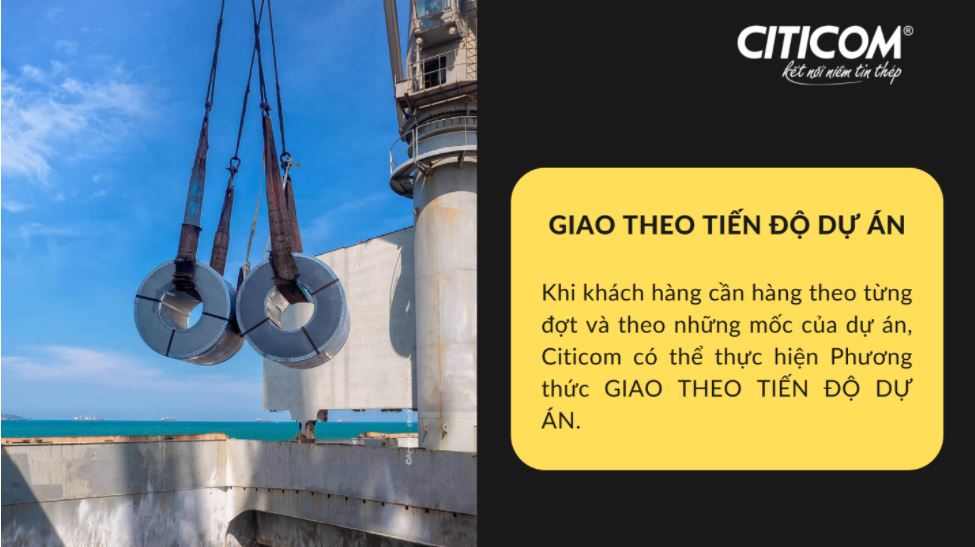 Khi khách hàng cần hàng theo từng đợt và theo những mốc của dự án, Citicom có thể thực hiện Phương thức GIAO THEO TIẾN ĐỘ DỰ ÁN.