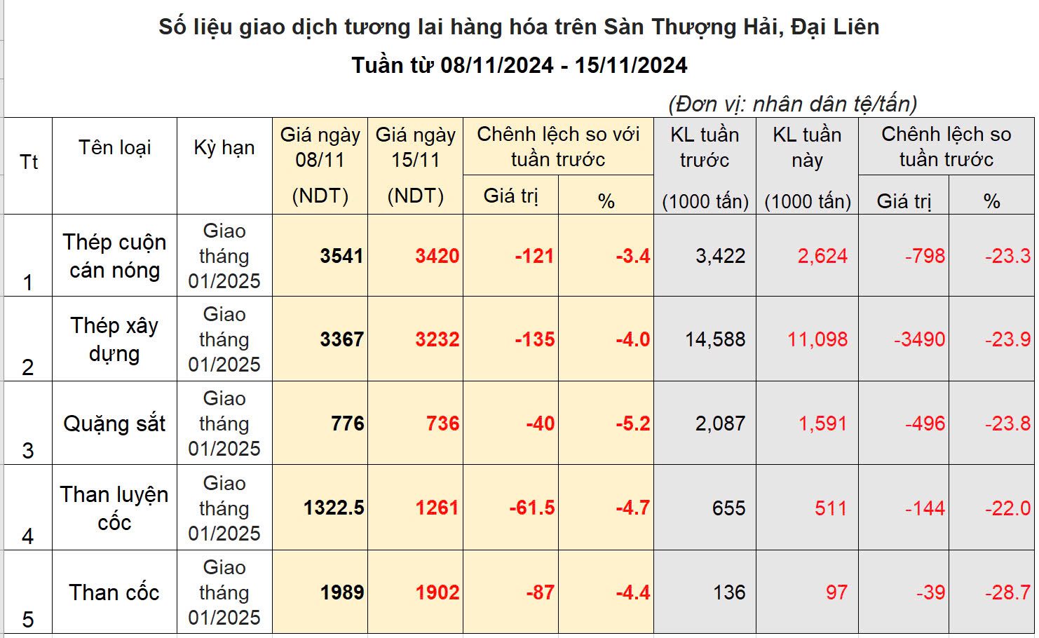 Cuối tuần trước, Thường vụ Quốc hội Trung Quốc đã thông qua gói kích thích trị giá 10.000 tỷ NDT tương đương 1.400 tỷ usd. Tuy nhiên, bản chất của chương trình này chủ yếu là cấp vốn cho các chính quyền địa phương trong việc tái cấu trúc lại các khoản nợ, chứ không phải là bơm tiền trực tiếp ra nền kinh tế phục vụ tiêu dùng hay sản xuất. Giới đầu tư thất vọng và trở lại tâm lý thận trọng. Điều này khiến thị trường hàng hóa tương lai bị bán mạnh, cầu mua giảm. Giá thép giảm trên 3%, quặng sắt giảm 5%. Khối lượng giao dịch cũng sụt giảm mạnh so với tuần trước.