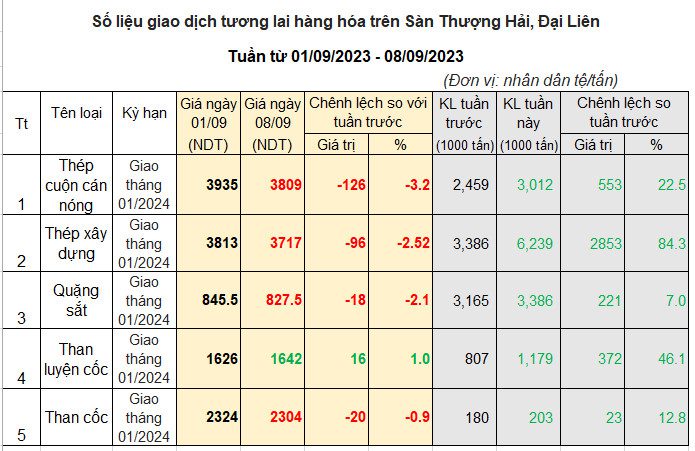 Khối lượng giao dịch tuần này tăng khá so với tuần trước, khối lượng thép tăng bình quân 50% , quặng sắt tăng 7% , than tăng 25%.