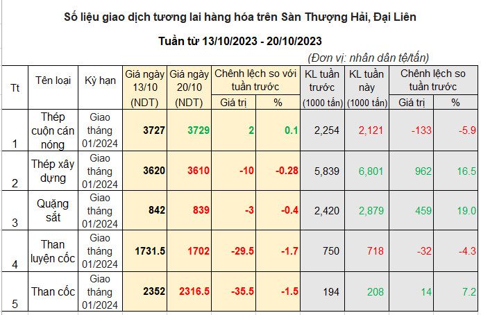 Giao dịch sắt thép và nguyên liệu tuần từ 13/10/2023 – 20/10/2023: Giá thép đi ngang