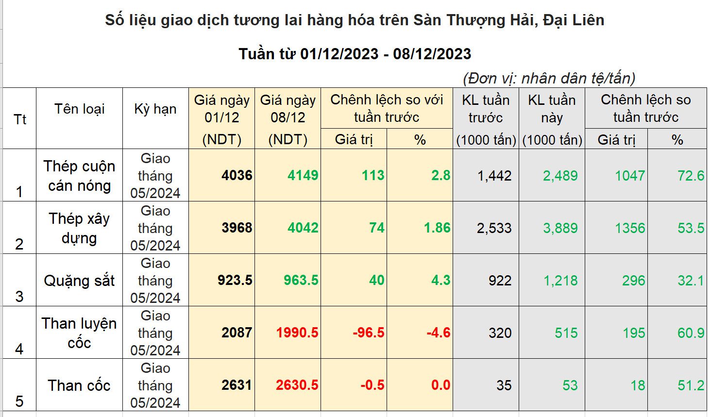 Giao dịch sắt thép và nguyên liệu tuần từ 01/12/2023 – 08/12/2023: Vượt ngưỡng kháng cự 4000NDT, Hrc hướng tới vùng 4300NDT